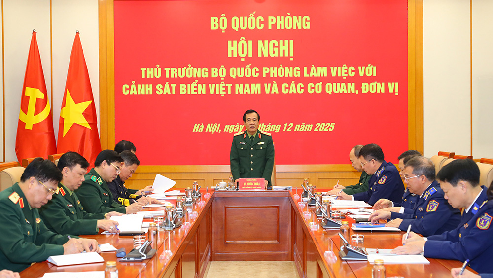 (Bqp.vn) - Sáng 9/12, tại Hà Nội đã diễn ra Hội nghị Thủ trưởng Bộ Quốc phòng làm việc với Cảnh sát biển Việt Nam và các cơ quan, đơn vị. Thượng tướng Lê Đức Thái, Ủy viên Trung ương Đảng, Thứ trưởng Bộ Quốc phòng chủ trì hội nghị.