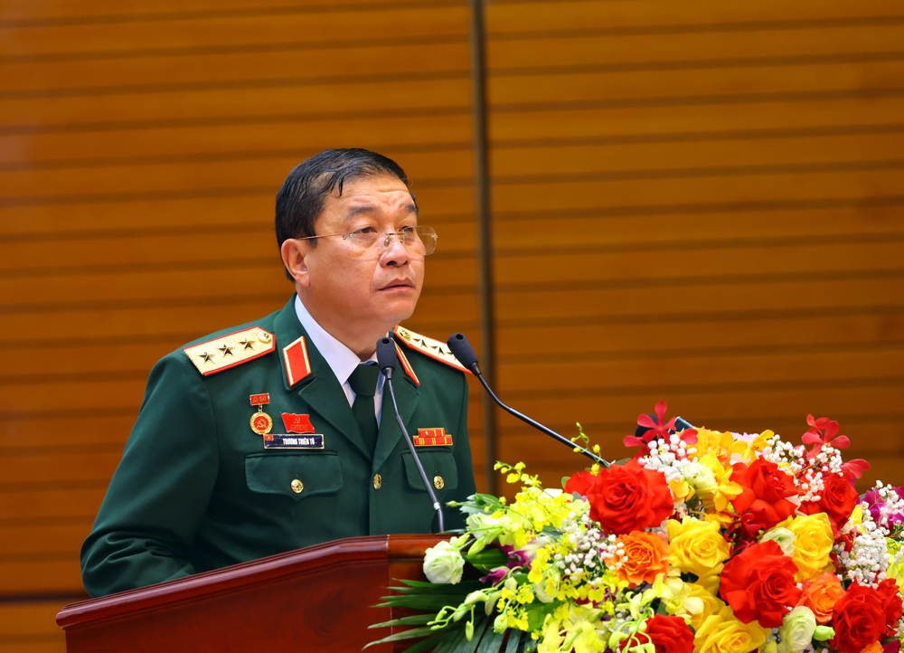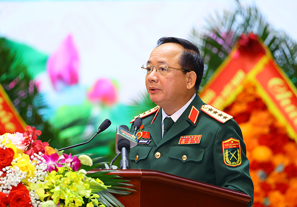 Thượng tướng Trương Thiên Tô, Phó Chủ nhiệm Tổng cục Chính trị QĐND Việt Nam phát biểu tại đại hội
