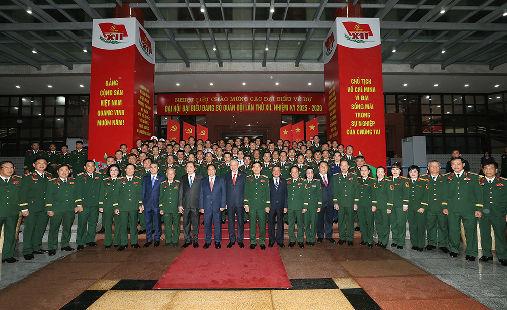 Tổng Bí thư Tô Lâm chụp ảnh cùng các đại biểu dự Đại hội đại biểu Đảng bộ Quân đội lần thứ XII, nhiệm kỳ 2025 - 2030