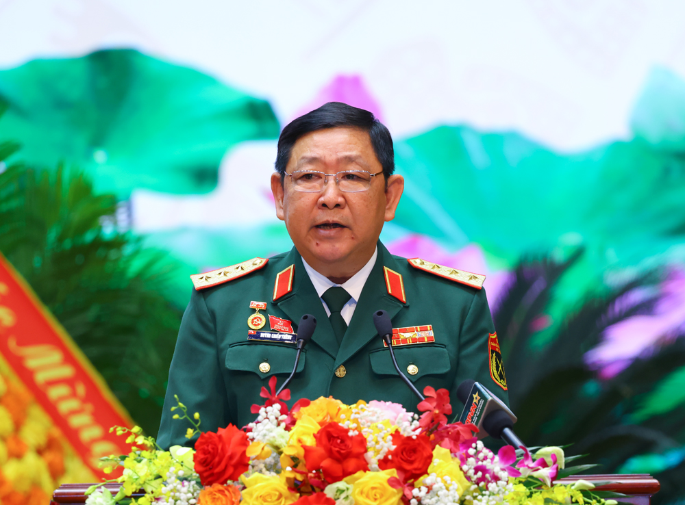 Thượng tướng Huỳnh Chiến Thắng, Ủy viên Trung ương Đảng, Phó Tổng Tham mưu trưởng QĐND Việt Nam phát biểu tại đại hội