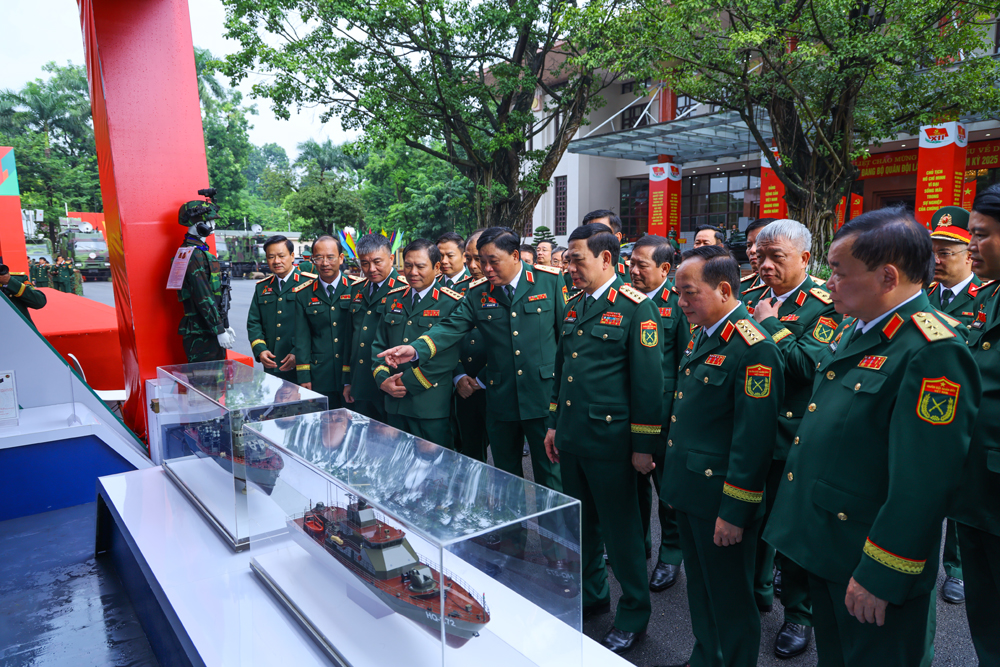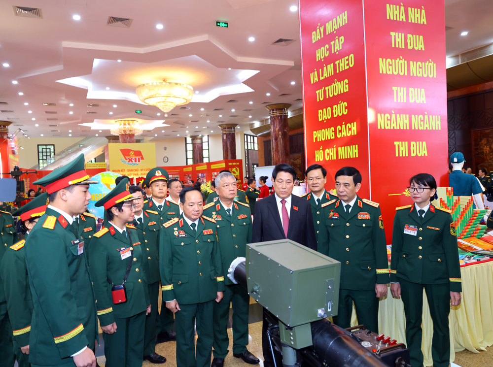 Đại tướng Phan Văn Giang cùng lãnh đạo Bộ Quốc phòng và các đại biểu tham quan các gian trưng bày phục vụ đại hội