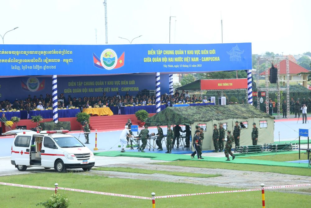 Quang cảnh diễn tập chung quân y khu vực biên giới Việt Nam - Cam-pu-chia