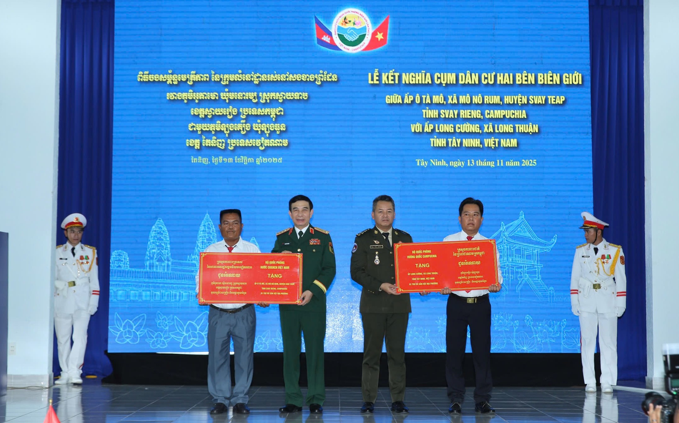 Đại tướng Phan Văn Giang và Đại tướng Tea Seiha trao quà tặng nhân dân hai bên biên giới