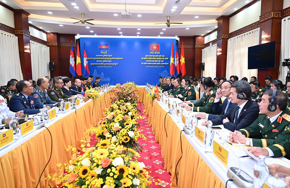 Đại tướng Phan Văn Giang và Đại tướng Tea Seiha đồng chủ trì Hội đàm giữa Đoàn đại biểu cấp cao BQP nước Cộng hòa XHCN Việt Nam và Đoàn đại biểu cấp cao BQP Vương quốc Cam-pu-chia