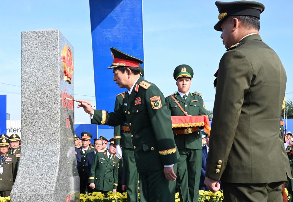 Đại tướng Phan Văn Giang tô son cột mốc chủ quyền phía Việt Nam
