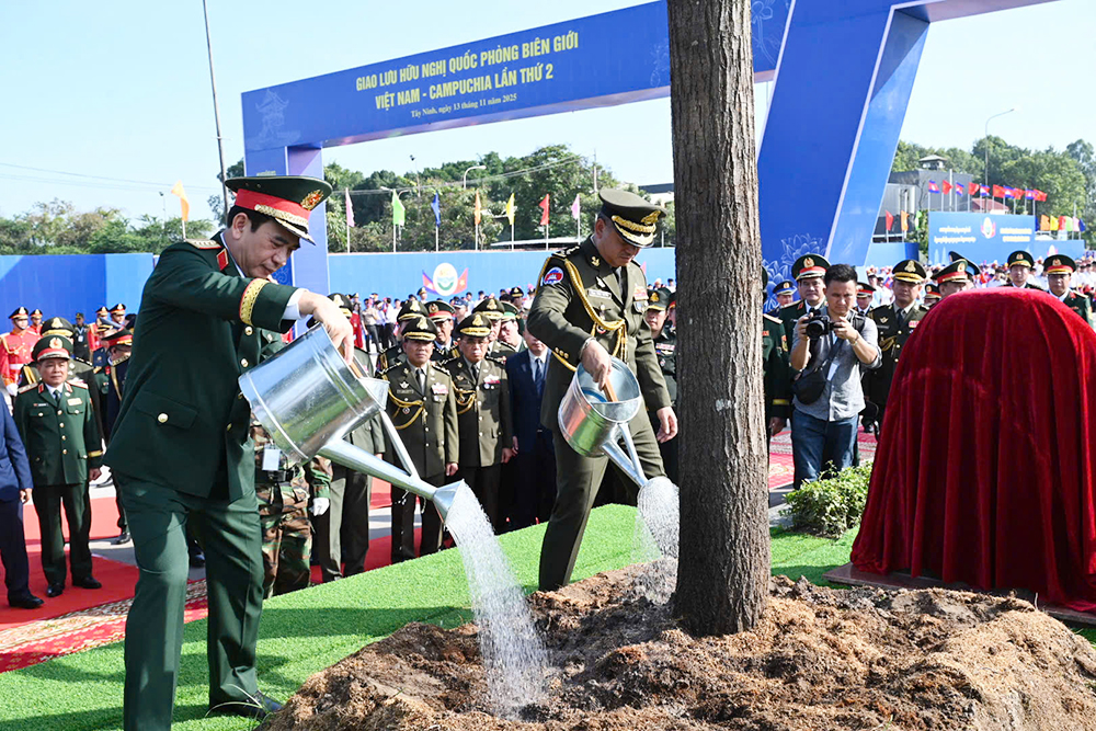 Đại tướng Phan Văn Giang và Đại tướng Tea Seiha trồng cây hữu nghị ở khu vực biên giới