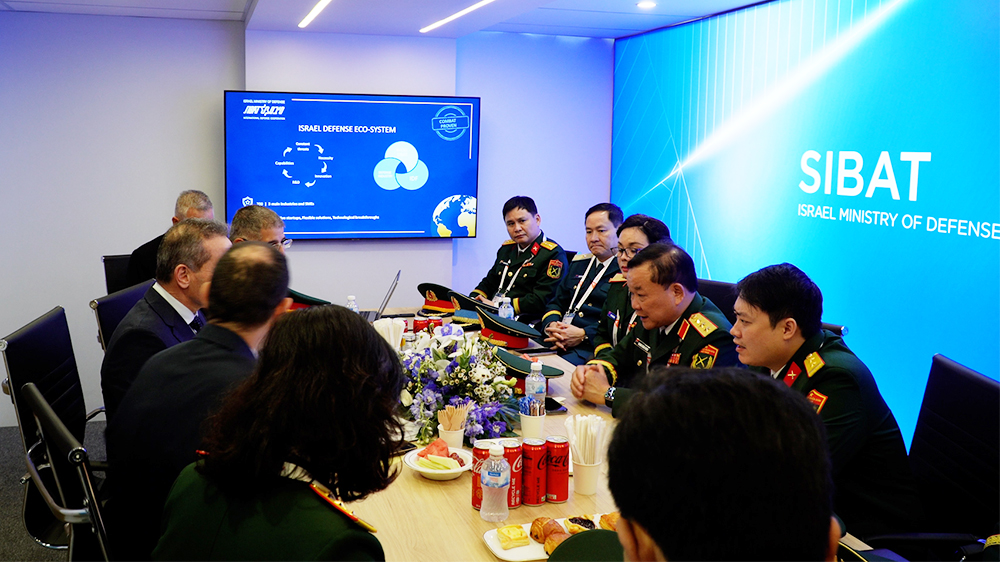 Thượng tướng Hoàng Xuân Chiến tiếp xúc với doanh nghiệp quốc phòng của Israel.