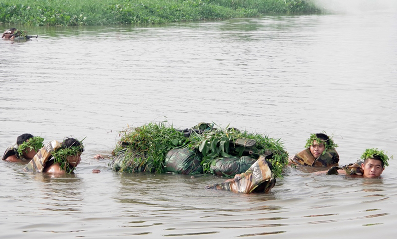 Cán bộ, chiến sĩ Sư đoàn 9, Quân đoàn 34 thực hành nội dung vượt sông trong diễn tập năm 2025.