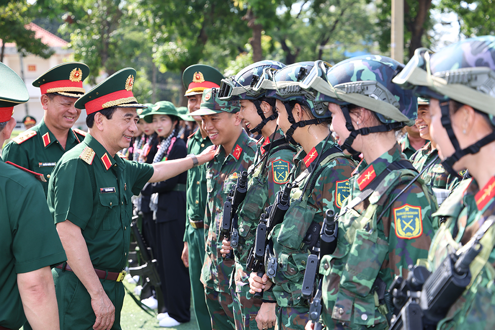 Đại tướng Phan Văn Giang thăm hỏi, động viên các lực lượng diễu binh, diễu hành trong Lễ kỷ niệm 50 năm Ngày giải phóng miền Nam, thống nhất đất nước, tháng 4/2025.