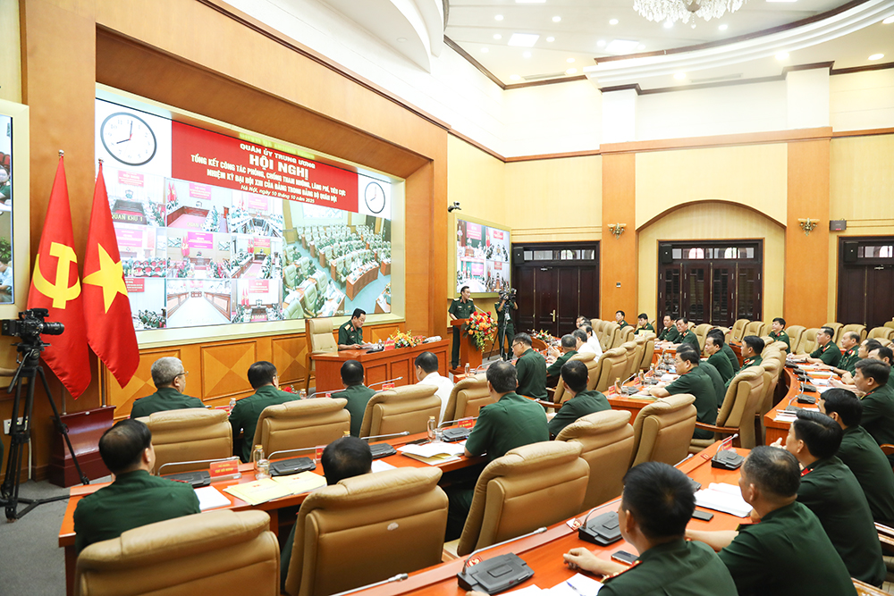 Hội nghị thống nhất đánh giá, thời gian qua, Quân ủy Trung ương, Bộ Quốc phòng đã quán triệt, triển khai, thực hiện nghiêm túc các nghị quyết, chỉ thị, quy định của Đảng, pháp luật của Nhà nước về PCTNLPTC được xác định trong nhiệm kỳ Đại hội XIII của Đảng, Nghị quyết Đại hội Đảng bộ Quân đội lần thứ XI. Kịp thời ban hành nghị quyết, chỉ thị, chương trình, kế hoạch, quy chế, quy định lãnh đạo, chỉ đạo trên từng lĩnh vực công tác trọng yếu sát đúng, phù hợp với tình hình, nhiệm vụ của Quân đội, làm cơ sở để triển khai, tổ chức thực hiện thống nhất trong toàn quân.