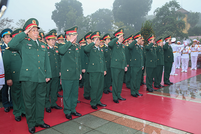 Tiếp đó, Đoàn đại biểu Quân ủy Trung ương, Bộ Quốc phòng do Đại tướng Lương Cường, Bí thư Trung ương Đảng, Chủ nhiệm Tổng cục Chính trị Quân đội nhân dân Việt Nam dẫn đầu đã tới đặt vòng hoa, vào Lăng viếng Chủ tịch Hồ Chí Minh và đặt vòng hoa, tưởng niệm các Anh hùng liệt sỹ tại Đài tưởng niệm các Anh hùng liệt sỹ, đường Bắc Sơn, Hà Nội.