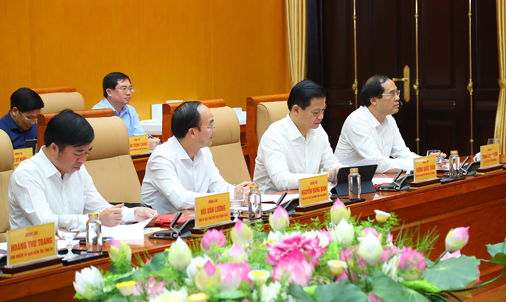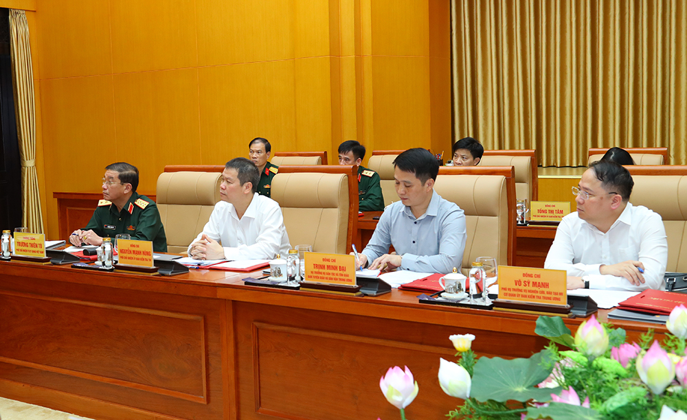 Tham dự hội nghị có Thượng tướng Trương Thiên Tô, Ủy viên Trung ương Đảng, Phó Chủ nhiệm Tổng cục Chính trị QĐND Việt Nam; Phó Chủ nhiệm Ủy ban Kiểm tra Trung ương Nguyễn Mạnh Hùng cùng các thành viên trong đoàn kiểm tra.