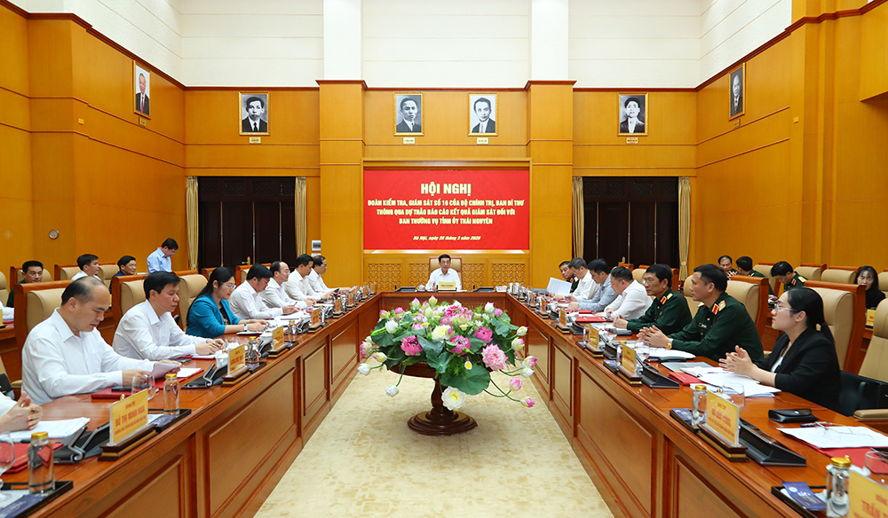 Phát biểu kết luận hội nghị, thay mặt Đoàn kiểm tra, giám sát, Đại tướng Phan Văn Giang đánh giá cao tinh thần làm việc nghiêm túc, thẳng thắn, cầu thị và trách nhiệm của Ban Thường vụ Tỉnh ủy Thái Nguyên trong lãnh đạo, chỉ đạo việc nghiên cứu, học tập, quán triệt, triển khai nghiêm túc Nghị quyết Đại hội XIV của Đảng; kịp thời ban hành chương trình hành động và chỉ đạo các cấp ủy, tổ chức đảng trực thuộc xây dựng kế hoạch thực hiện gắn với điều kiện thực tiễn của địa phương, đơn vị. Ban Thường vụ Tỉnh ủy Thái Nguyên đã lãnh đạo, chỉ đạo kịp thời ban hành các văn bản cần thiết; thành lập Ban Chỉ đạo bầu cử; chỉ đạo thành lập đầy đủ các tổ chức phụ trách bầu cử; chuẩn bị cơ sở vật chất, kinh phí, nhân sự và các điều kiện cần thiết để bảo đảm cuộc bầu cử được tổ chức dân chủ, đúng pháp luật, an toàn và tiết kiệm. Công tác tuyên truyền về bầu cử đại biểu Quốc hội khóa XVI và HĐND các cấp nhiệm kỳ 2026 - 2031 được triển khai tốt; tỷ lệ cử tri tham gia bầu cử đạt 99,82%, là một trong 10 địa phương có tỷ lệ cao nhất cả nước.