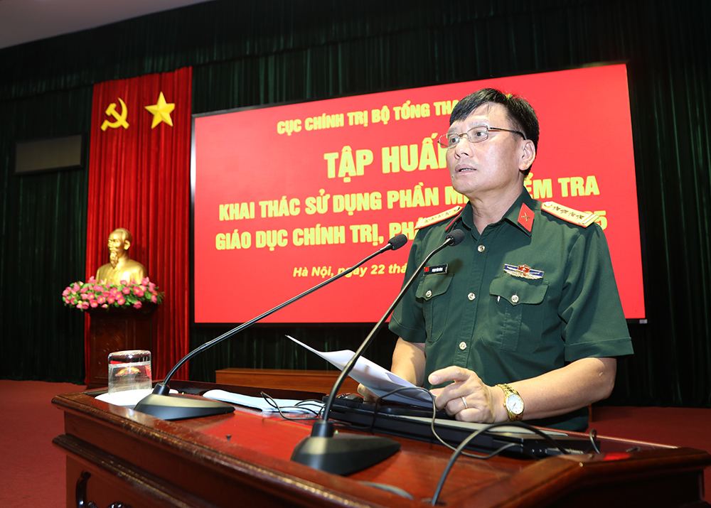 Phát biểu tại hội nghị, Đại tá Phạm Văn Hùng cho biết, nhằm đẩy mạnh thực hiện Chỉ thị số 2423 ngày 09/11/2023 của Thường vụ Quân ủy Trung ương về đổi mới, nâng cao chất chất lượng công tác giáo dục chính trị trong giai đoạn mới và Đề án “Đổi mới công tác giáo dục chính trị tại đơn vị trong giai đoạn mới” gắn với đẩy mạnh ứng dụng công nghệ thông tin góp phần nâng cao chất lượng công tác giáo dục chính trị, pháp luật; Cục Chính trị Bộ Tổng Tham mưu đã tham mưu xây dựng phần mềm kiểm tra công tác giáo dục chính trị, pháp luật hằng năm cho các đối tượng trong Bộ Tổng Tham mưu.