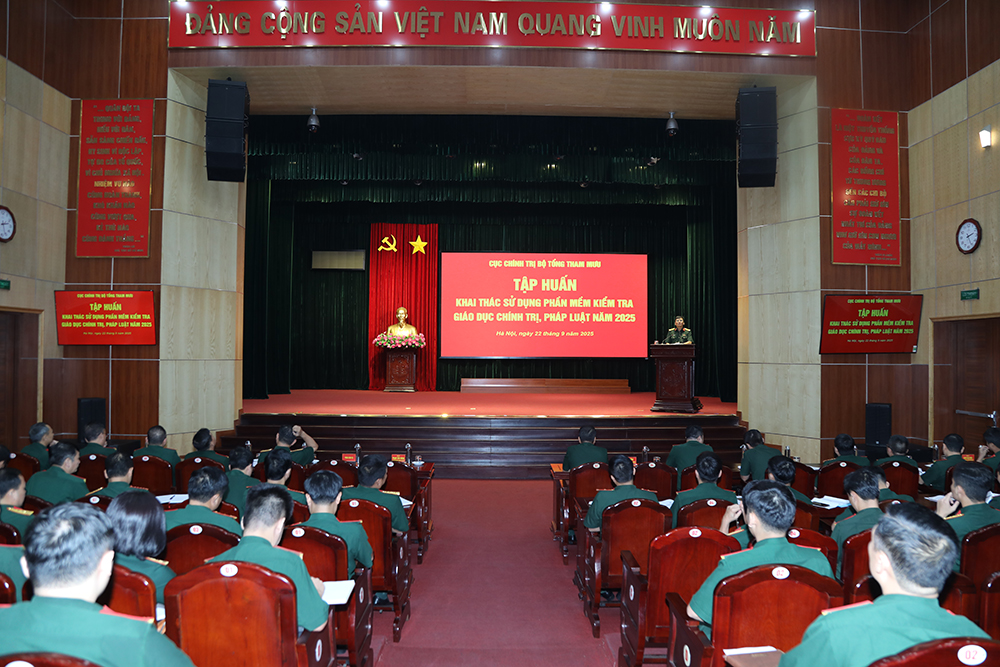 (Bqp.vn) - Chiều 22/9, tại Hà Nội, Cục Chính trị Bộ Tổng Tham mưu QĐND Việt Nam tổ chức Hội nghị tập huấn khai thác sử dụng phần mềm kiểm tra giáo dục chính trị, pháp luật năm 2025. Đại tá Phạm Văn Hùng, Phó Chủ nhiệm Chính trị Bộ Tổng Tham mưu chủ trì hội nghị.