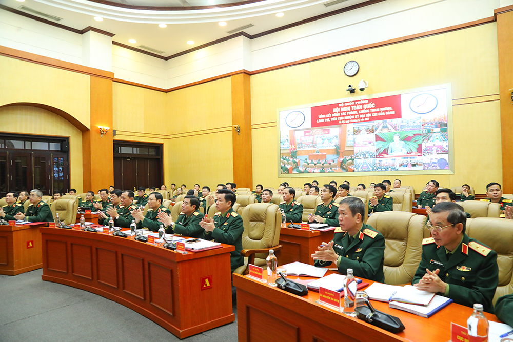 Dự hội nghị tại điểm cầu Sở Chỉ huy Bộ Quốc phòng có: Đại tướng Nguyễn Tân Cương, Ủy viên Trung ương Đảng, Ủy viên Thường vụ Quân ủy Trung ương, Tổng Tham mưu trưởng QĐND Việt Nam, Thứ trưởng Bộ Quốc phòng.