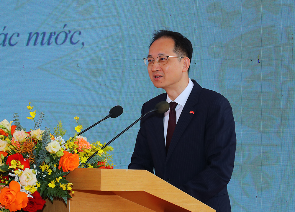 Công sứ Đại sứ quán Trung Quốc tại Việt Nam Vương Quần phát biểu tại buổi lễ.
