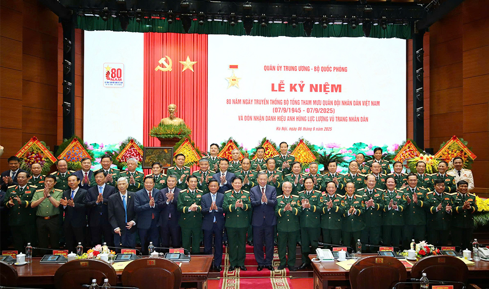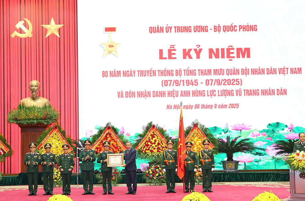 (Bqp.vn) - Những thành tích, chiến công của Bộ Tổng Tham mưu luôn thể hiện đỉnh cao về nghệ thuật quân sự và chỉ đạo chiến tranh nhân dân của Đảng ta; thể hiện bản lĩnh, trí tuệ, tài thao lược và sự vận dụng sáng tạo truyền thống đánh giặc “lấy ít địch nhiều, lấy nhỏ thắng lớn” của dân tộc ta. Đây là lời ngợi khen của Tổng Bí thư Tô Lâm, Bí thư Quân ủy Trung ương dành cho Bộ Tổng Tham mưu tại lễ kỷ niệm 80 năm ngày thành lập và đón nhận danh hiệu Anh hùng Lực lượng nhân dân vũ trang, diễn ra sáng 6/9/2025 tại Hà Nội.
