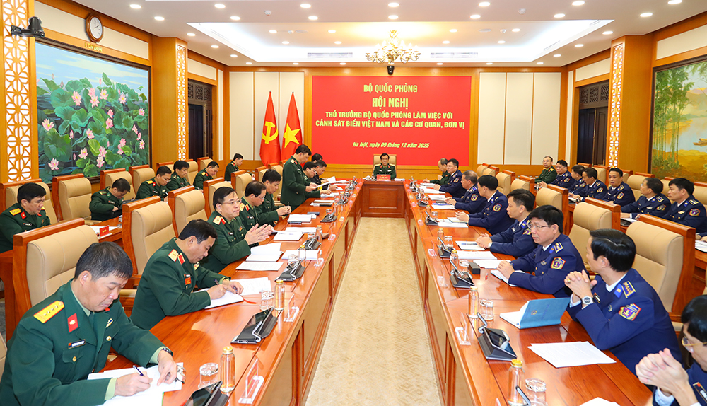 (Bqp.vn) - Sáng 9/12, tại Hà Nội đã diễn ra Hội nghị Thủ trưởng Bộ Quốc phòng làm việc với Cảnh sát biển Việt Nam và các cơ quan, đơn vị. Thượng tướng Lê Đức Thái, Ủy viên Trung ương Đảng, Thứ trưởng Bộ Quốc phòng chủ trì hội nghị.