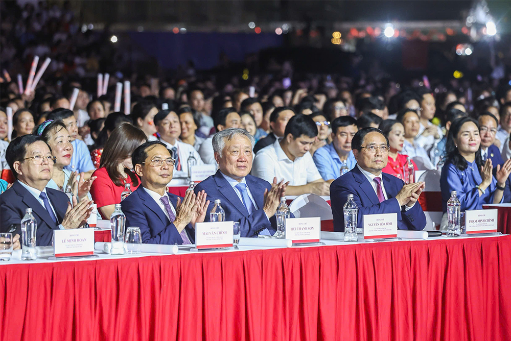 Thay mặt Lãnh đạo Đảng, Nhà nước, Thủ tướng ghi nhận, đánh giá cao và trân trọng cảm ơn sự tâm huyết, trách nhiệm, sự nỗ lực, sức sáng tạo của các bộ, ban, ngành, địa phương, doanh nghiệp, các nhà khoa học, nghệ nhân, nghệ sĩ, nhạc sĩ, nhà sản xuất âm nhạc, đơn vị tổ chức nghệ thuật, các tình nguyện viên cùng toàn thể đồng chí, đồng bào đã chung tay làm nên thành công rực rỡ của Triển lãm, tỏa sáng tinh thần “Đoàn kết - Trí tuệ - Sức mạnh - Vinh quang - Tự hào chúng ta là người Việt Nam”.