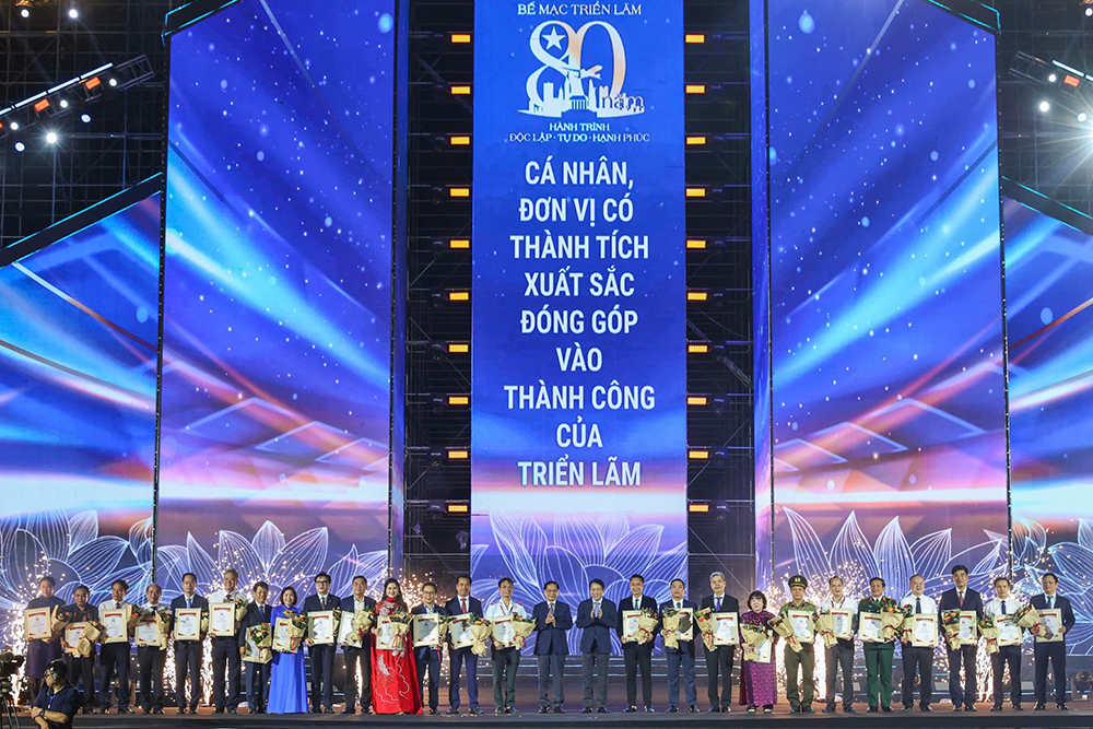 Ghi nhận những đóng góp, thành tích xuất sắc của các tập thể, cá nhân trong công tác tổ chức và tham gia triển lãm, Thủ tướng Chính phủ đã quyết định tặng Bằng khen với 36 tập thể và cá nhân. Ban Tổ chức cũng tặng 50 giải thưởng “Không gian trưng bày tiêu biểu”, trong đó có không gian trưng bày của Bộ Quốc phòng, cho các đơn vị tham gia Triển lãm. Tại buổi lễ, Thủ tướng Phạm Minh Chính và đồng chí Phan Đình Trạc, Ủy viên Bộ Chính trị, Bí thư Trung ương Đảng, Trưởng Ban Nội chính Trung ương trao Bằng khen của Thủ tướng Chính phủ và tặng hoa chúc mừng các đơn vị.