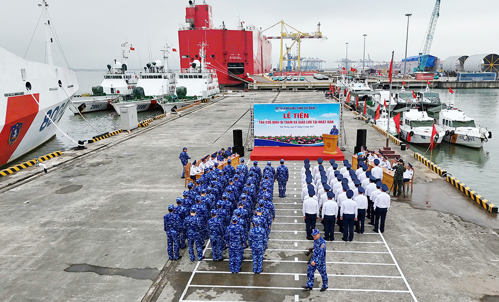 (Bqp.vn) - Sáng 7/11, tại Hải Phòng, Bộ Tư lệnh Vùng Cảnh sát biển 1 tổ chức Lễ tiễn Tàu CSB 8004 cùng Đoàn công tác Cảnh sát biển Việt Nam lên đường đi thăm, giao lưu với Lực lượng Bảo vệ bờ biển Nhật Bản tại tỉnh Fukuoka.