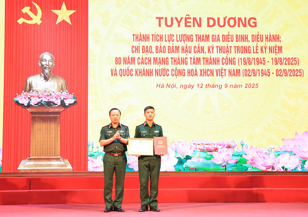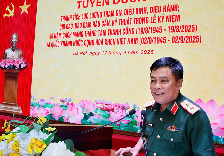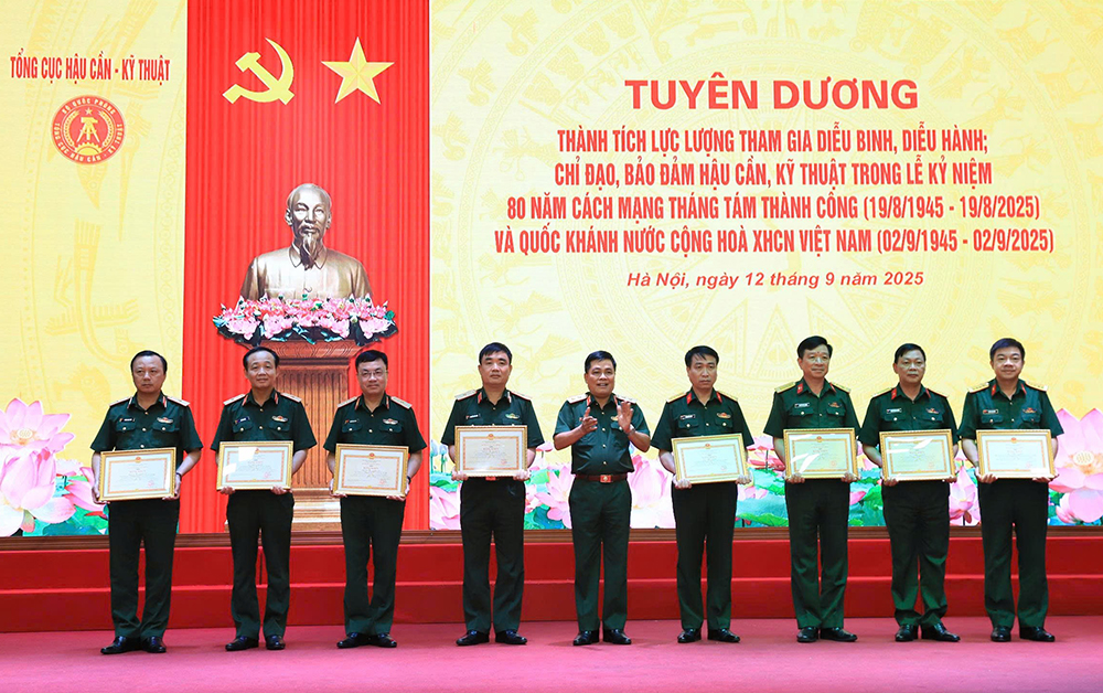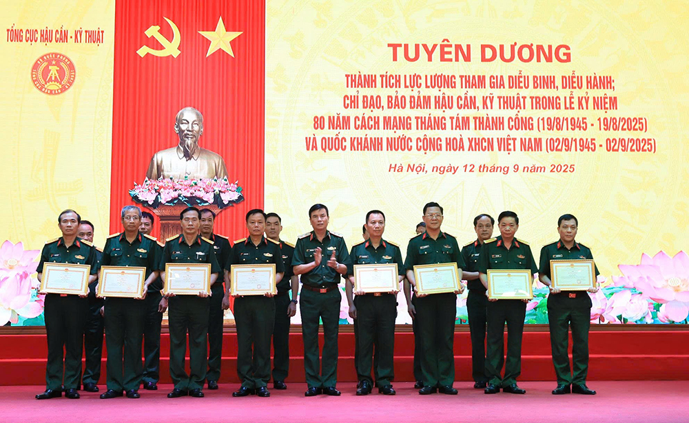 (Bqp.vn) - Chiều 12/9, tại Hà Nội, Tổng cục Hậu cần - Kỹ thuật (HC-KT) tổ chức Tuyên dương các lực lượng tham gia diễu binh, diễu hành, bảo đảm HC-KT trong Lễ kỷ niệm 80 năm Cách mạng tháng Tám thành công (19/8/1945 - 19/8/2025) và Quốc khánh nước Cộng hòa XHCN Việt Nam (02/9/1945 - 02/9/2025) (nhiệm vụ A80). Trung tướng Trần Minh Đức, Chủ nhiệm Tổng cục HC-KT chủ trì buổi lễ.