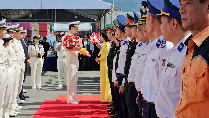 Đón tàu tại cảng Tiên Sa có đại diện lãnh đạo Sở Ngoại vụ thanh phố Đà Nẵng, Bộ Tư lệnh Vùng Cảnh sát biển 2, Bộ Chỉ huy Quân sự thành phố Đà Nẵng, đại diện Cục Đối ngoại (Bộ Quốc phòng).