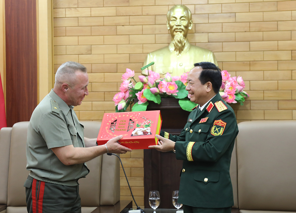 Đại tướng Trịnh Văn Quyết tiếp xã giao Tổng cục trưởng Tổng cục Công tác tư tưởng Bộ Quốc phòng Bê-la-rút.