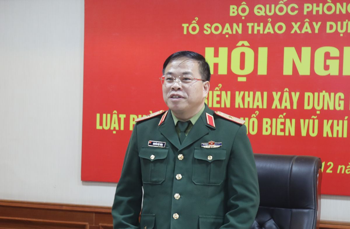(Bqp.vn) - Chiều 5/12, tại Hà Nội, Tổ soạn thảo xây dựng luật Bộ Quốc phòng tổ chức Hội nghị triển khai xây dựng dự án Luật Phòng, chống phổ biến vũ khí hủy diệt hàng loạt. Thiếu tướng Nguyễn Việt Dũng, Cục trưởng Cục Pháp chế Bộ Quốc phòng, Tổ Phó Thường trực Tổ soạn thảo chủ trì hội nghị.