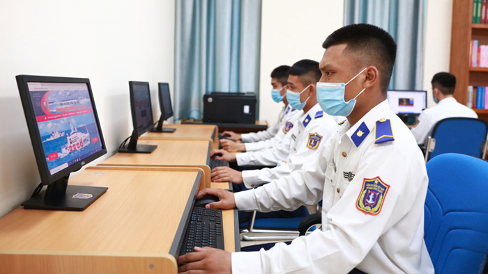 Cán bộ, chiến sĩ Cảnh sát biển Việt Nam tham gia vòng thi thử Cuộc thi trực tuyến “Tìm hiểu Luật Cảnh sát biển Việt Nam”.