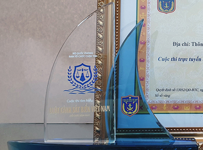 Kỷ niệm chương của Ban Tổ chức trao tặng các thí sinh đạt giải tại Cuộc thi trực tuyến toàn quốc “Tìm hiểu Luật Cảnh sát biển Việt Nam”.